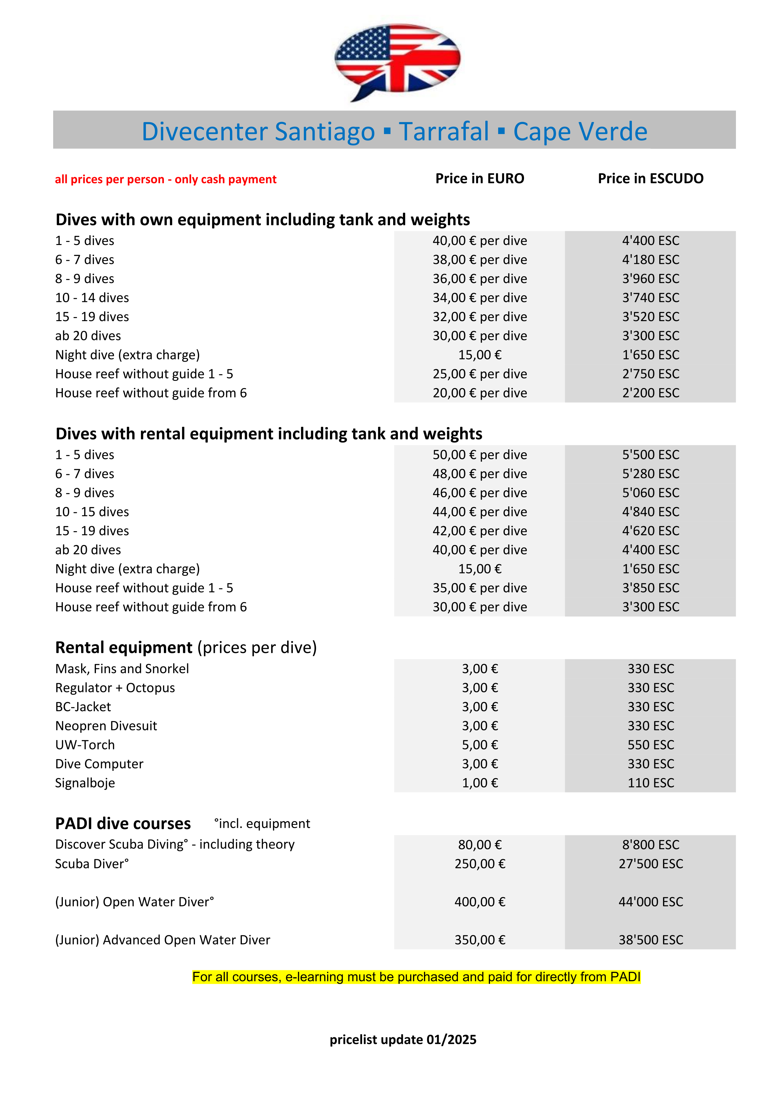 Prices - Divecenter Santiago, Centro Mergulho Santiago, Santiago divecenter