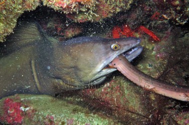 Boca de PoçaWird von Land aus betaucht, fällt unweit des Einstieges fast senkrecht auf 40 Meter ab. Wunderschön bewachsene Überhänge. Schwärme von Doktorfischen, Feilenfischen oder von Makrelen gejagte Sardinen. Nicht für unsportliche Taucher geeignet, da vereinzelt Strömung und der Ein - und Ausstieg (mit unserer Hilfe) an der Felskante.